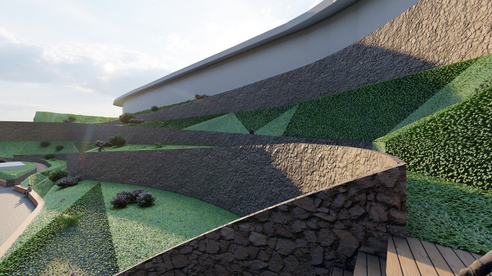 In Phase 4, the access path to the various bathing areas will be improved, and platforms will be created to facilitate access to the pool from both the access path and the different bathing areas. Sunbathing areas will also be added.