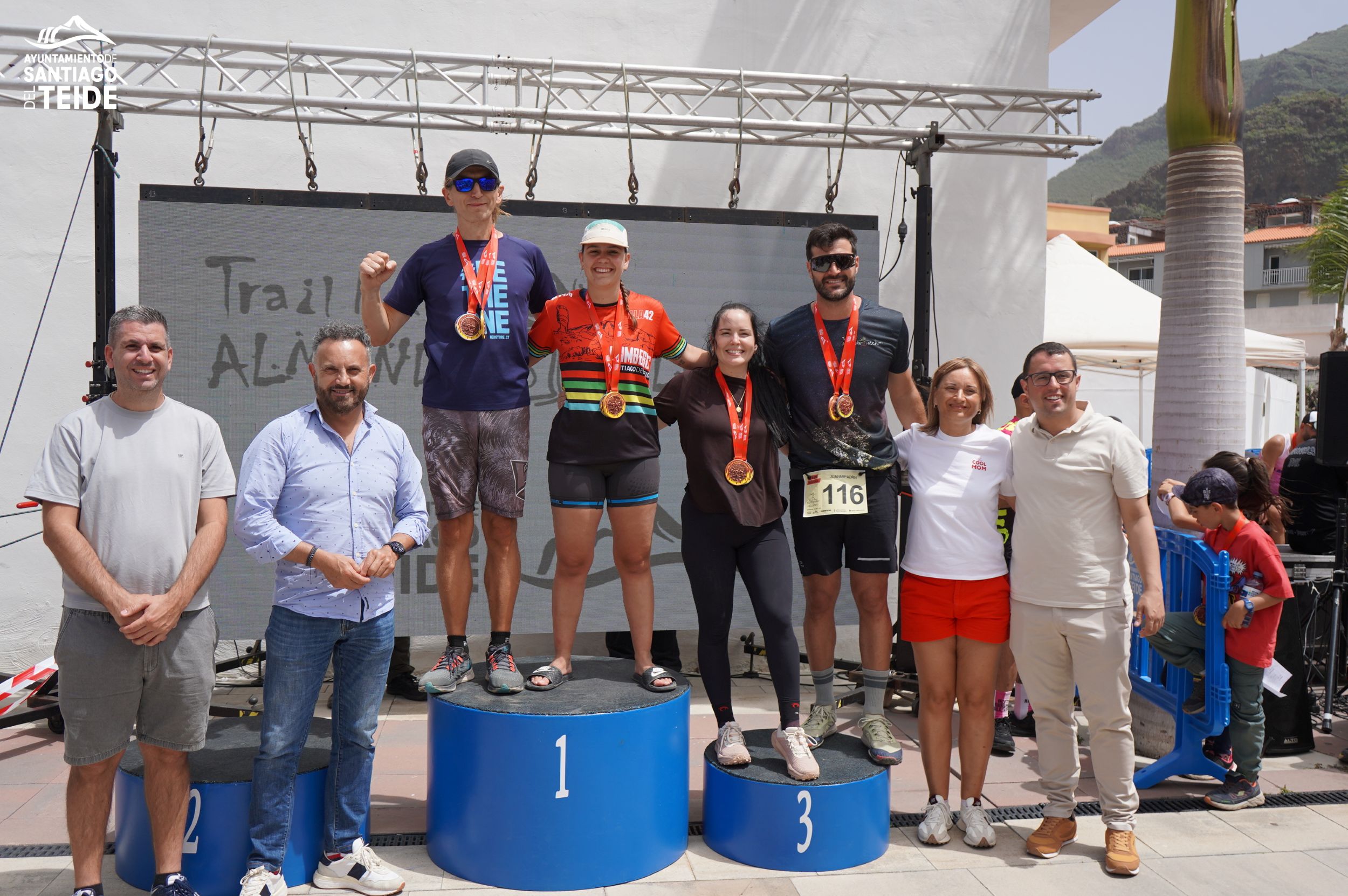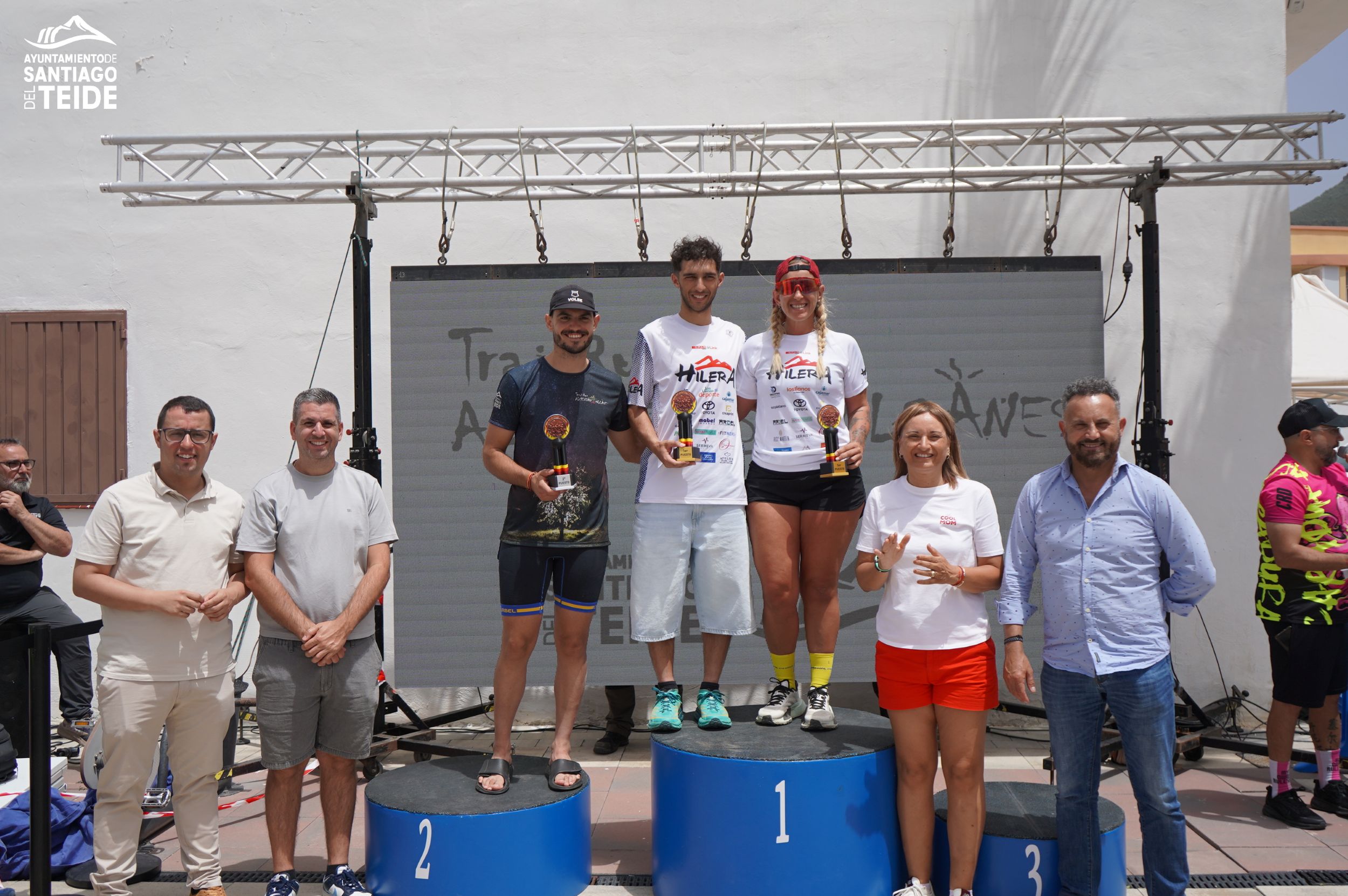 Agustín David Reyes and Myriam Báez were the overall winners of the main 21km race at the 14th edition of the Almendros y Volcanes Trail Run in Santiago del Teide, which was part of the KSeries Canarias circuit and took place this Sunday, April 19th, along the trails of the mid-to-upper part of the municipality, starting and finishing in the Abelardo González square in Tamaimo. The podium for the men's 21km race was as follows: Agustín David Reyes finished first, Javier Hernández second, and Jocsan Negrín third.